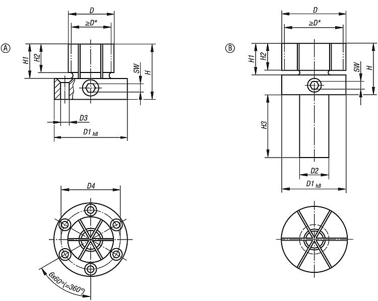 * D 最小值 = 可车削或铣削为最小许可直径“D”。
