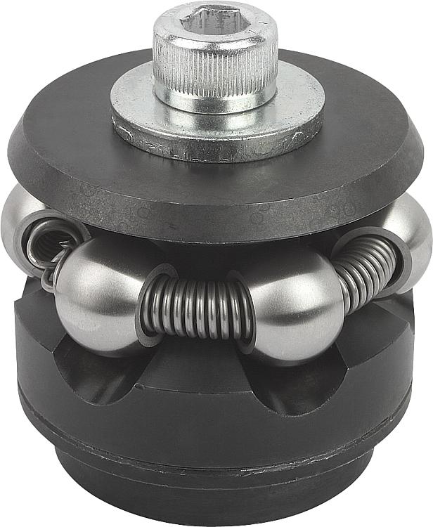 拉力弹簧 1.4310。规格:主体经硬化和黑色氧化处理。 顶珠和六角经硬化和打磨处理。提示:A 型:带有顶珠,适用可适度承压的开孔中使用。技术参数:重复精度 ±0.025 同轴精度 ±0.05应用:用于在定位孔中的定心和夹紧。优点:- 精确的自定心。 - 夹紧不易变形。 - 较大的调整行程。 - 较小的结构高度。图纸提示:A 型: 带有顶珠,适用可适度承压的开孔中使用。 B 型: 带有六角,适用表面敏感型孔壁。