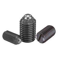 带一字槽和顶珠的弹簧柱塞,钢制,加长型,标准弹簧弹力