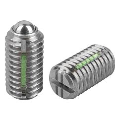 03011_VF带一字槽和顶珠的弹簧柱塞,不锈钢,加强弹簧弹力,带螺纹锁 |