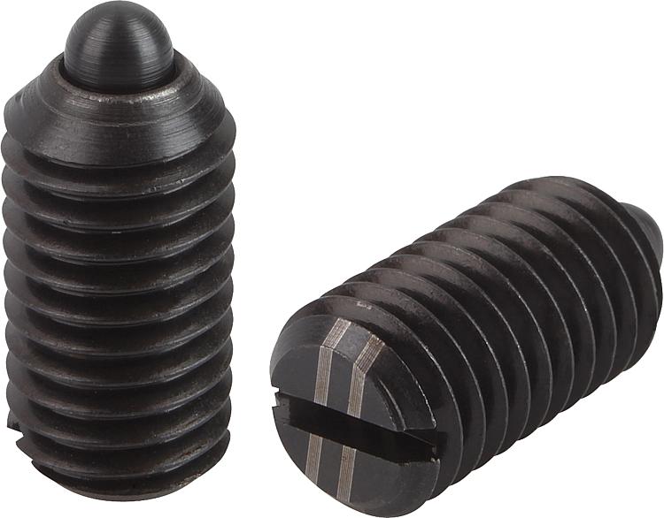 带一字槽和止动顶销的弹簧柱塞,钢制,加强弹簧弹力