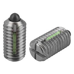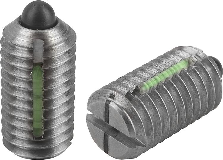 03026_LF带一字槽和止动顶销的弹簧柱塞,不锈钢,轻弹簧弹力,带螺纹锁 |