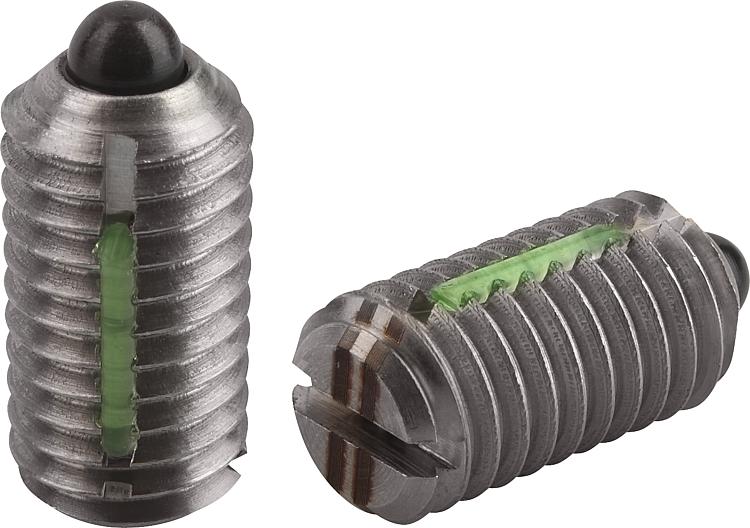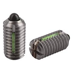 03026_VF带一字槽和止动顶销的弹簧柱塞,不锈钢,加强弹簧弹力,带螺纹锁 |