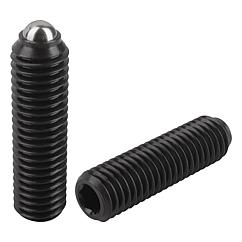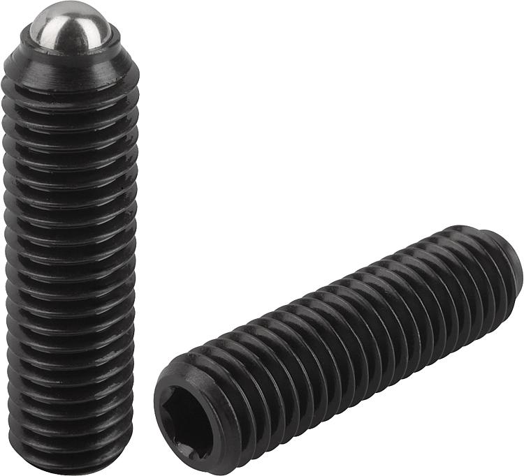 带内六角和顶珠的弹簧柱塞,钢制,加长型,标准弹簧弹力