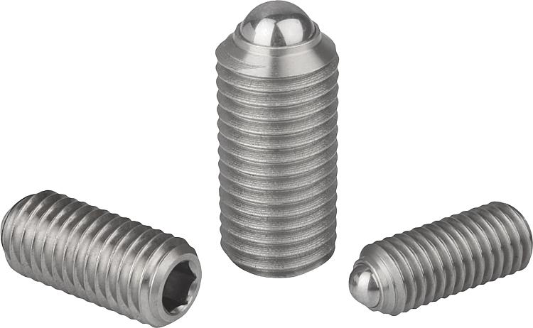 带内六角和顶珠的弹簧柱塞,不锈钢,加强弹簧弹力 |