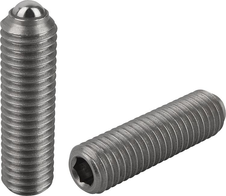 带内六角和顶珠的弹簧柱塞,不锈钢,加长型,标准弹簧弹力