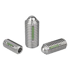 带内六角和顶珠的弹簧柱塞,不锈钢,标准弹簧弹力,带螺纹锁
