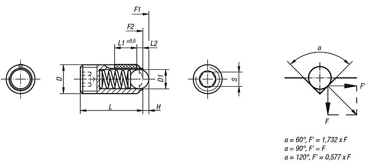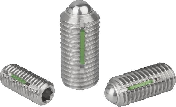 带内六角螺钉和滚珠的弹簧柱塞,不锈钢,带螺纹锁