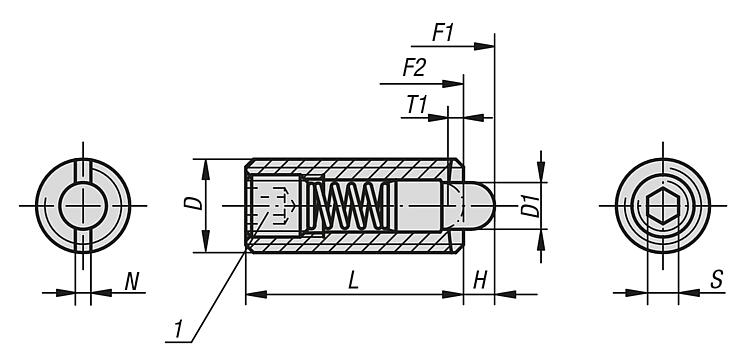 带内六角和止动顶销的弹簧柱塞,钢制,标准弹簧弹力 |