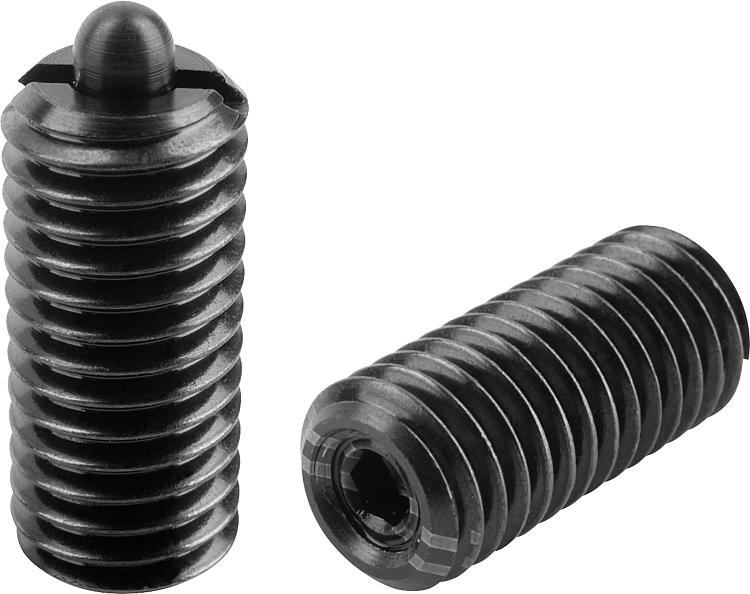 带内六角和止动顶销的弹簧柱塞,钢制,加强弹簧弹力
