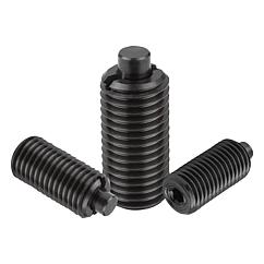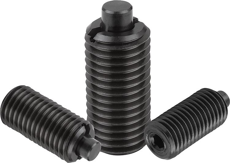规格:黑色氧化。顶销硬化处理。提示:此类弹簧柱塞主要在机械结构中当推杆或弹性挡块使用。顶销的致动沿轴向方向进行。图纸提示: