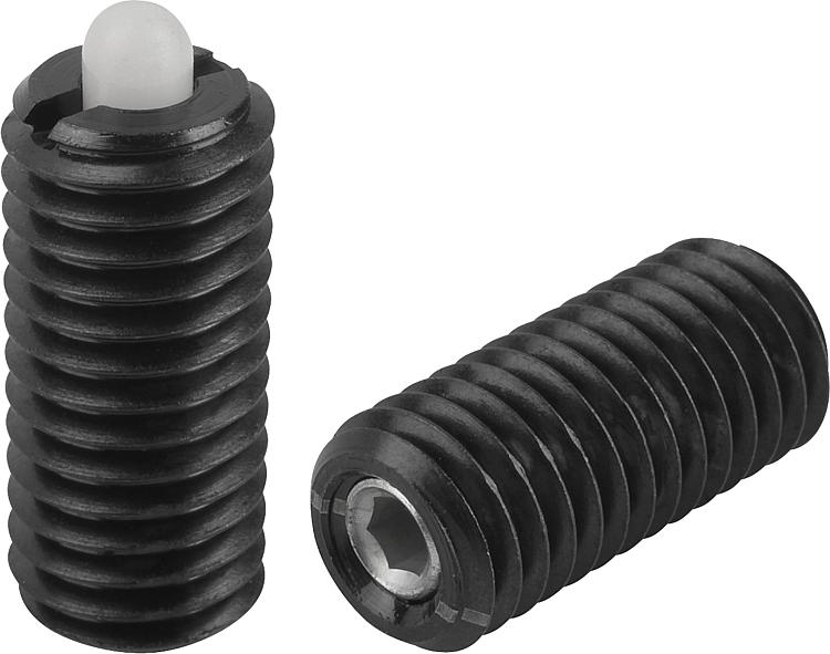 03050_LF带内六角和 POM 止动顶销的弹簧柱塞,轻弹簧弹力 |