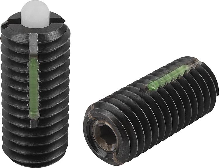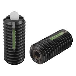 03051_LF带内六角和 POM 止动顶销的弹簧柱塞,轻弹簧弹力,带螺纹锁 |