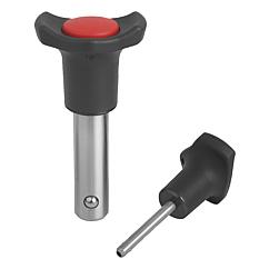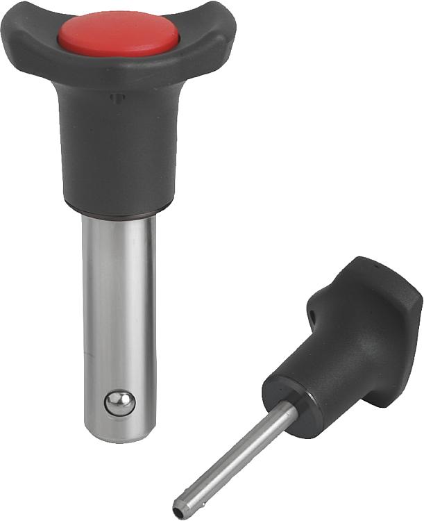 产品说明材料:热塑性塑料把手及按钮。 不锈钢主体。规格:手柄黑。 色按钮红色。 主体亮色。提示:快锁插销用于快捷简便地固定和连接部件和工件。 按下把手上的压紧旋钮可以解锁两个顶珠,并插入需要连接的工件。释放压紧旋钮,顶珠重新锁紧,形成可靠的连接。