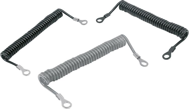 螺旋式挂绳提供零件的安全连接。具有很好的回复力、耐用性和耐磨损性。