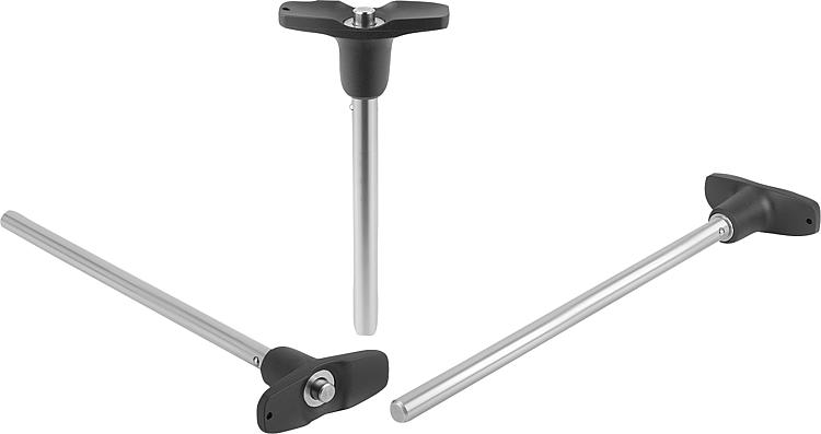 1.4310 不锈钢压力弹簧。 规格:黑灰色把手。 光亮不锈钢。提示:快锁插销用于快捷简便地固定和连接部件和工件。 按下把手上的压紧旋钮可以解锁两个顶珠,并插入需要连接的工件。释放压紧旋钮,顶珠重新锁紧,形成可靠的连接。