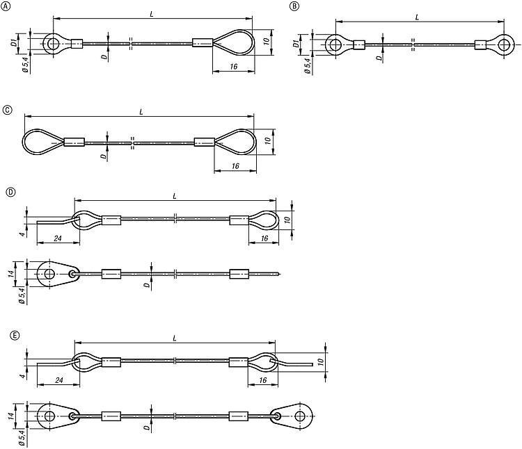 产品说明产品描述:挂绳用于固定器具或设备上松动的部件。不同的形状提供了多种连接和移动方式。 如果需要非常高的耐腐蚀性,我们建议使用 A4 不锈钢挂绳。材料:规格:挂绳空白或带有透明或黑色塑料涂层。 压板空白或黑色。应用:用于固定电器和设备上松动的工具或其他部件。温度范围:最大 80 °C。附件:利用挂绳和钥匙圈(03199),可以保证插销(03193, 03194, 03196, 03415, 03415-05, 03415-10, 03418, 03418-10, 03420, 03420-05, 03420-10, 03422和03195, 03412)的安全连接,避免遗失。图纸提示:形式 A:带孔眼和压接电缆插头 形式 B: 带压接电缆插头 表格 C: 带孔眼 表格 D: 带孔眼和压板 表格 E: 带压板 特点: 下载此处为收集信息的 PDF: