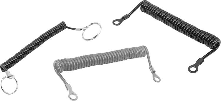 螺旋式挂绳提供零件的安全连接。具有很好的回复力、耐用性和耐磨损性。