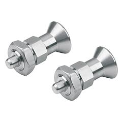03089_B不锈钢短型分度销,带不锈钢蘑菇头把手和锁紧螺母 |