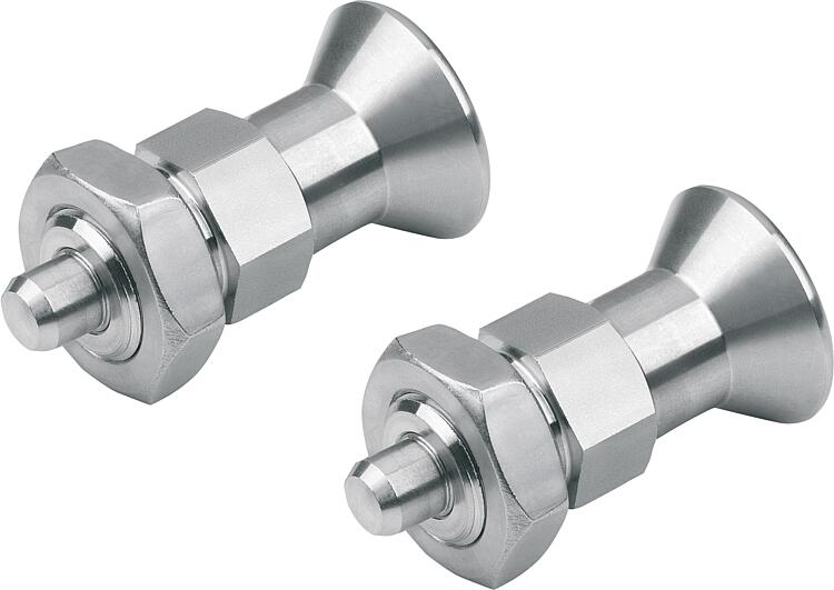 不锈钢版本 A4: 亮色螺纹套筒。 蘑菇型手柄经抛光或喷砂处理。 柱塞顶销经打磨和化学镀镍处理。 柱塞顶销经打磨处理,亮色。提示:所使用的材料可广泛应用。 对于耐腐蚀性要求极高的情况,建议使用 A4 不锈钢制分度销。 根据要求:特殊类型。附件:定位衬套 03099-50。 间隔环 03089。 不锈钢连接嵌入件,用于薄壁部件 03094-10。特点: 下载此处为收集信息的 PDF: