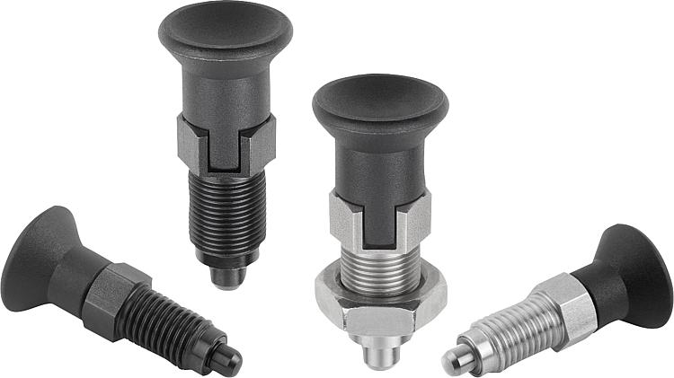 特级钢制或不锈钢锁紧柱塞,带塑料蘑菇头把手、圆柱形锁紧销和锁紧螺母 |