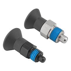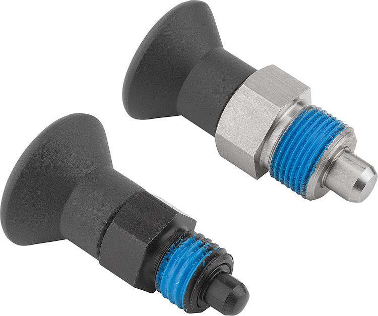 钢制或不锈钢短型锁紧柱塞,带塑料蘑菇头把手和螺纹锁扣