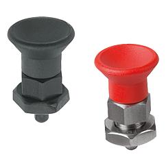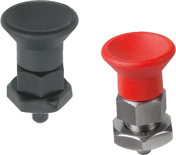 03089_B钢制或不锈钢短型锁紧柱塞,带塑料蘑菇头把手,无拔出锁槽,带锁紧螺母 |