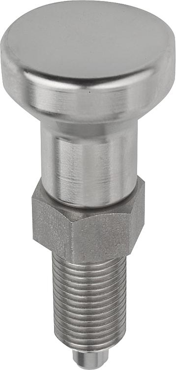 压缩弹簧 1.4401 或 1.4571。 规格:不锈钢版本 A2: 螺纹套筒抛光。 蘑菇型手柄抛光。 锁销经过硬化或未经硬化、研磨和抛光。