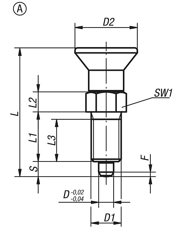 RAL7021 黑灰色或 RAL3020 交通红色蘑菇头把手。提示:所使用的材料可广泛应用。 对于耐腐蚀性要求极高的情况,建议使用 A4 不锈钢制分度销。 根据要求:特殊类型。图纸提示:A型: 不带拔出锁槽, 不带锁紧螺母 B型: 不带拔出锁槽, 带锁紧螺母 C型: 带拔出锁槽, 不带锁紧螺母 D型: 带拔出锁槽, 带锁紧螺母 下载此处为收集信息的 PDF: