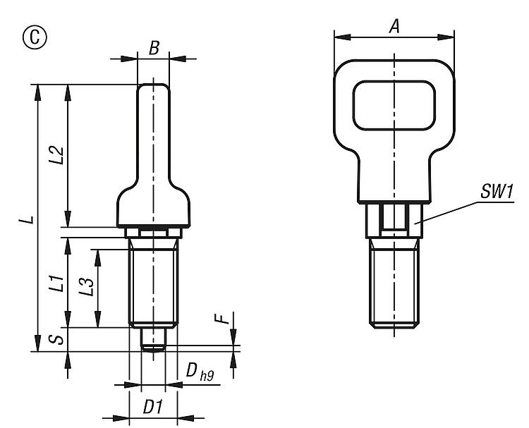钢制或不锈钢锁紧柱塞,带塑料孔眼把手,C 型