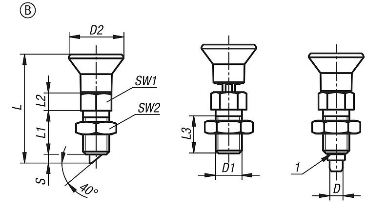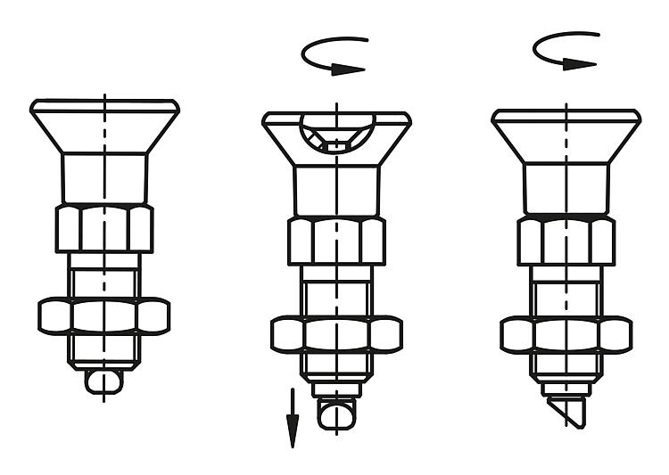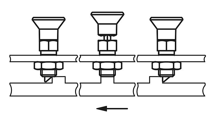 通过防扭转确保销钉与套筒的位置不发生变化。起动斜坡通过单侧横向力可以自动压出销钉。将螺栓松开至销钉上的标记位置,可以以 60° 的格距旋转起动斜坡。材料:钢制规格: