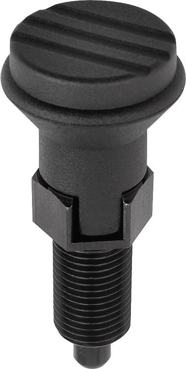 钢制或不锈钢锁紧柱塞,带塑料蘑菇头把手,带顶盖,带拔出锁槽,无锁紧螺母