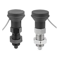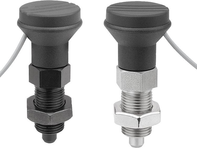 03090-20_B钢制或不锈钢分度销,带塑料蘑菇头把手和状态传感器,有线和锁紧螺母 |