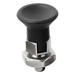 03090_DECO 钢制或不锈钢短型锁紧柱塞,带塑料蘑菇头把手、拔出锁槽和锁紧螺母 |