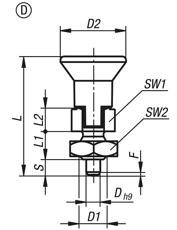 | D1 | D2 | L | L1 | L2 | 行程 S | SW1 | SW2 | Fx30° | 初始位置 弹簧弹力 F1 约 N | 终点位置 弹簧弹力 F2 约 N | 锁紧扭矩 max. Nm | CAD | 配件 | 价格 | 订购 |