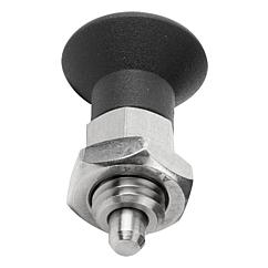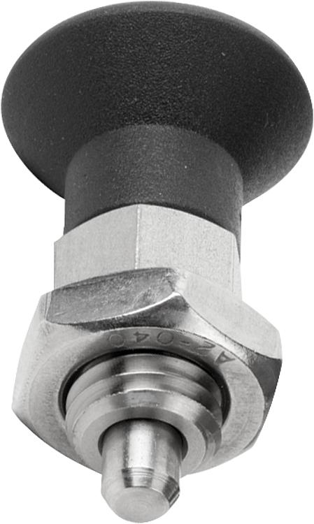03093_BECO 钢制或不锈钢短型锁紧柱塞,带塑料蘑菇头把手和锁紧螺母 |
