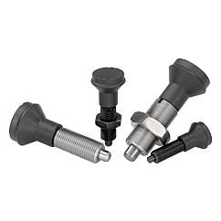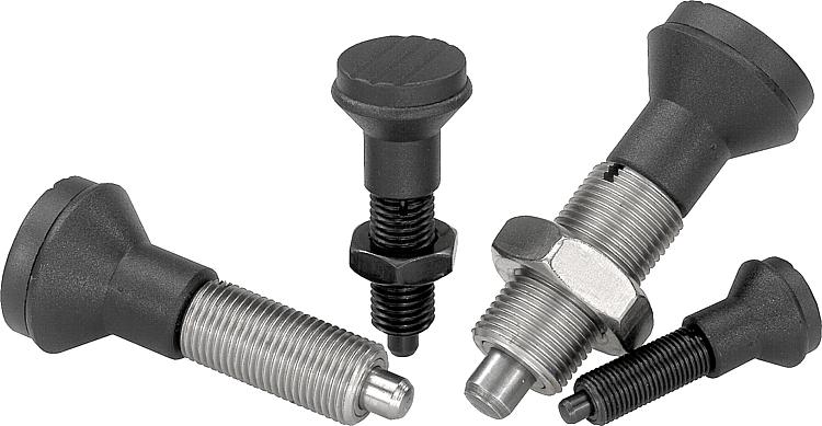 钢制或不锈钢锁紧柱塞,无轴环,带塑料蘑菇头把手,带顶盖,无锁紧螺母 |