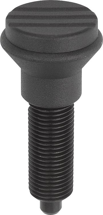 03094_G钢制或不锈钢锁紧柱塞,无轴环,带塑料蘑菇头把手,带顶盖,无锁紧螺母 |