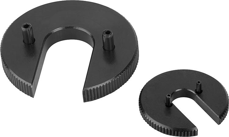 用于将不带凸缘的锁紧柱塞拧入的特殊螺栓垫片。将它推入松动的蘑菇把手的下面,将针脚插入插槽中。