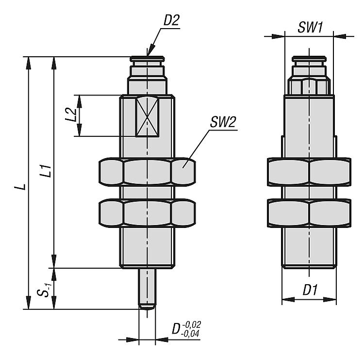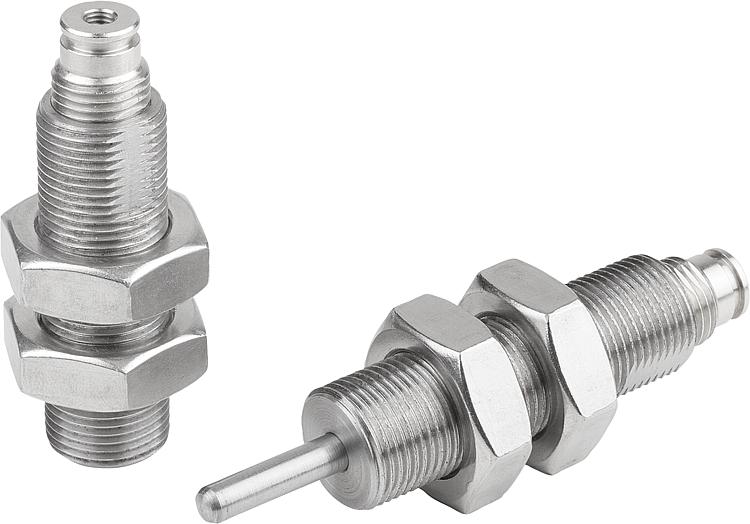 不锈钢规格: 亮色螺纹套筒。 止动顶销经过硬化和研磨,光亮。 六角螺母毛坯。提示:单向作用的活塞杆气缸。 原料: 气缸管 黄铜 镀镍, 活塞杆 不锈钢, 密封 丁腈橡胶, 聚氨酯。 运行介质: 经过过滤处理的,干燥后的空气,添加或未添加润滑油。 适用温度:-20 °C 至 +80 °C。特点: 下载此处为收集信息的 PDF:
