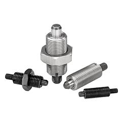 不锈钢规格: 亮色螺纹套筒。 柱塞顶销经硬化并打磨处理,亮色。 柱塞顶销未经硬化并打磨处理,亮色。 提示:支持加装旋钮垫片方便锁紧柱塞拧入。柱塞蘑菇头下方有对应插槽,配合旋钮垫片的使用。根据要求:特殊类型。附件:间隔环 03089。 连接嵌入件 用于薄壁部件 03094-10。图纸提示:J型: 带顶销, 不带锁紧螺母 K型: 带顶销, 带锁紧螺母 特点: 下载此处为收集信息的 PDF:
