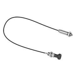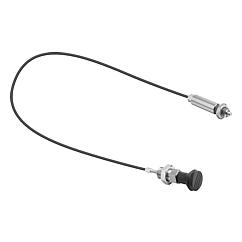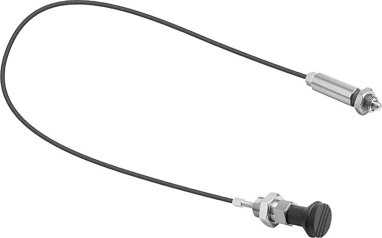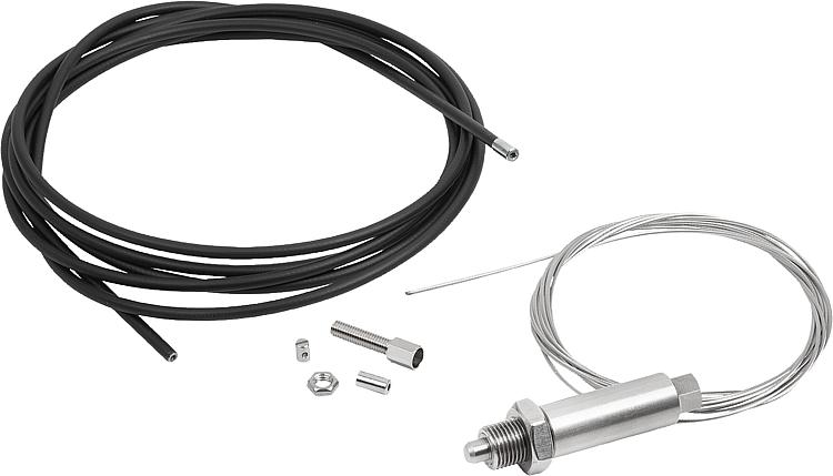 端套、调节螺丝和螺纹接线柱采用黄铜制成。 规格:螺纹套筒,亮色。 柱塞顶销经硬化并打磨处理,亮色。 黑色鲍登索套。 黑灰色 RAL7021 热塑性塑料蘑菇头把手。订购须知:带远程控制功能的锁紧柱塞和控制机构必须另行订购。提示:除了控制机构外,随附的螺纹接线柱 (Ø5 x 7 mm) 也用于将独立的控制机构连入系统。