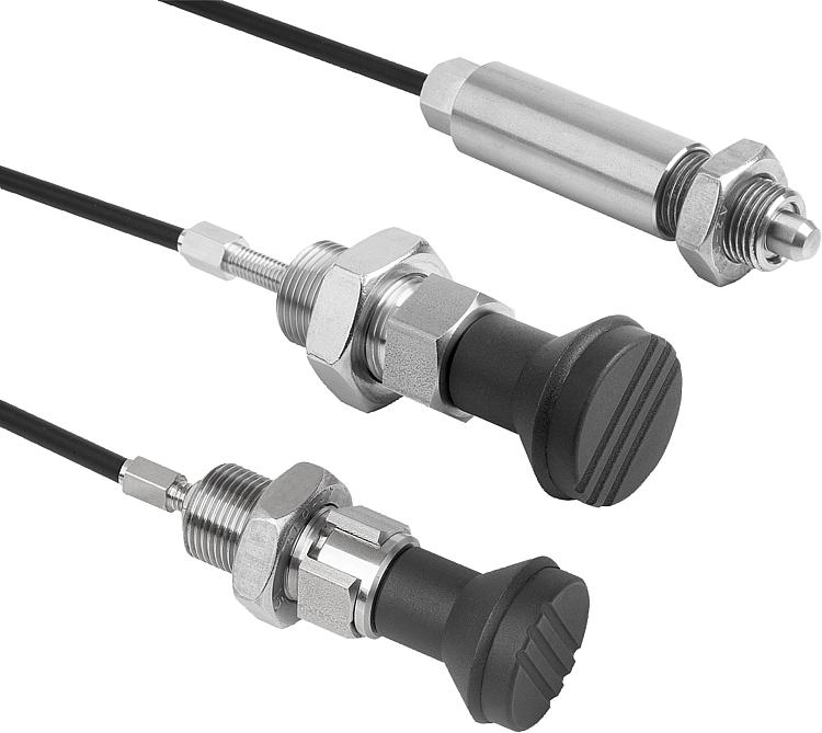 锁紧柱塞和操作人员侧的连接通过鲍登索来完成。锁紧柱塞搭配控制机构形成了一整套系统,可应对许多应用情况。如果柱塞顶销需要长时间维持在拔出状态时,为避免顶销弹回,可选用带有锁定功能 D 型控制机构。材料:锁紧柱塞: