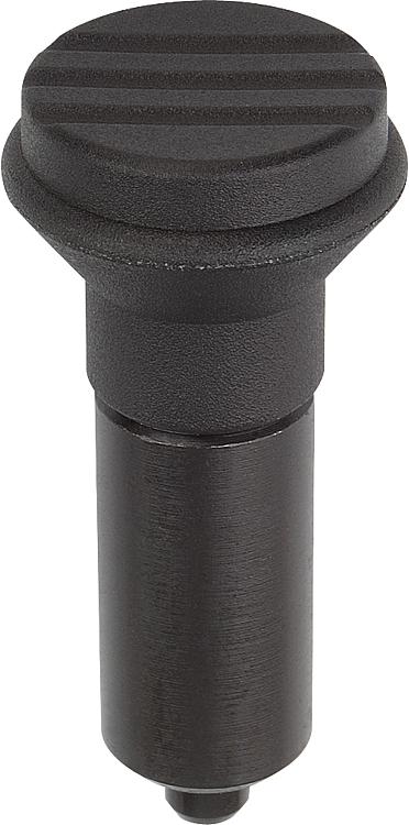 钢制或不锈钢锁紧柱塞,光滑型,无轴环,带塑料蘑菇头把手,带顶盖,无拔出锁槽