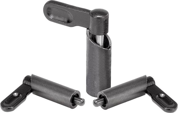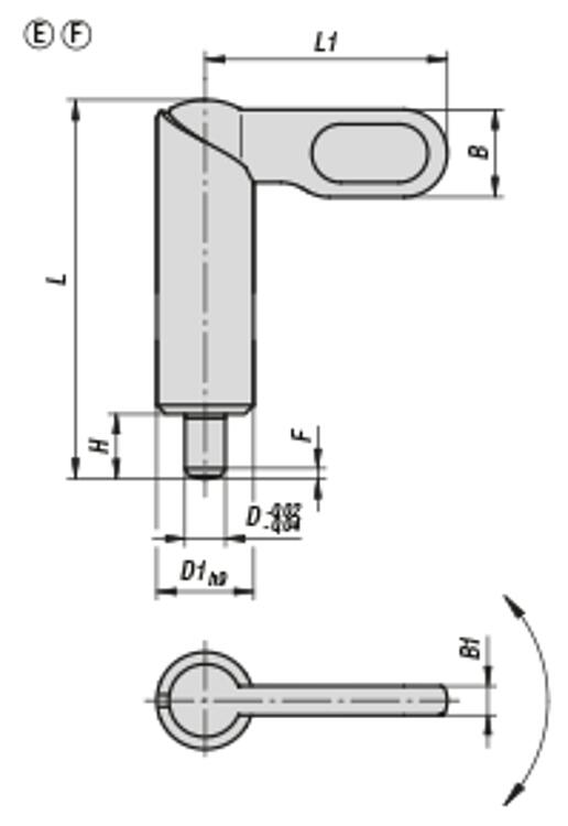 产品说明材料:手柄 1.0503。 顶销 强度等级5.8。 套筒 1.0403。规格:黑色氧化 顶销经硬化、抛光处理。提示:凸轮旋柄柱塞用在顶销不需要一直伸出的场合。手柄旋转180°顶销缩回。 套筒上有沟槽保证手柄可以维持在该位置。图纸提示:E型:手柄未喷涂,光身套筒 F型:手柄喷涂, 光身套筒 特点: 下载此处为收集信息的 PDF: