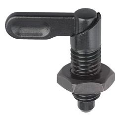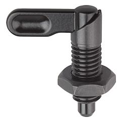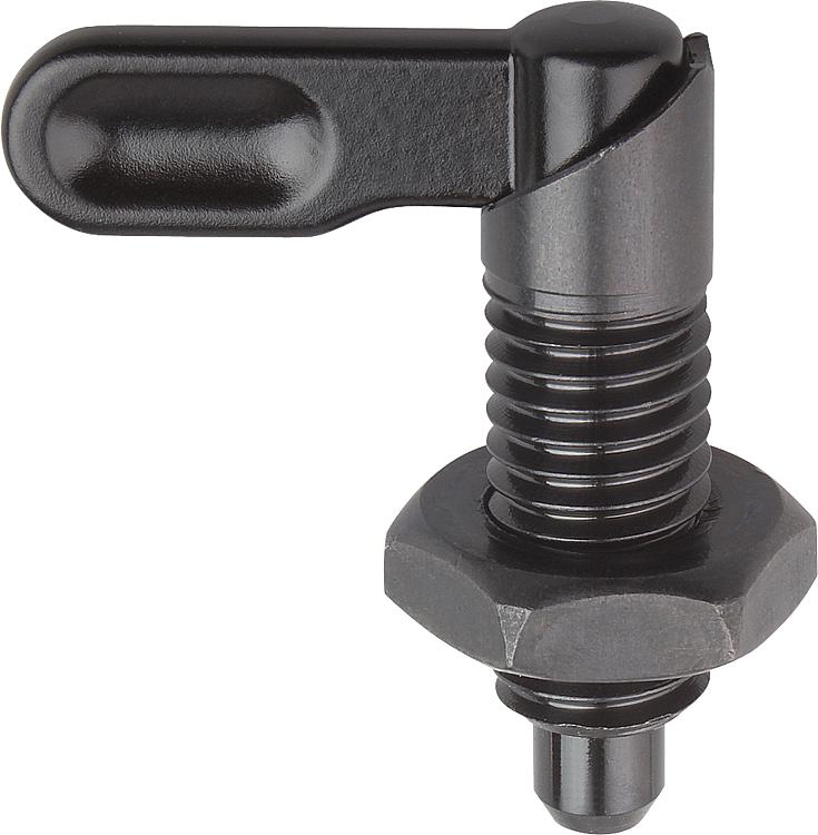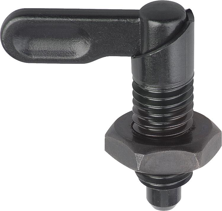 产品说明材料:钢制, 强度等级5.8。规格:黑色氧化 顶销经硬化、抛光处理。提示:手柄型分度销用在顶销不需要一直伸出的场合。手柄旋转180°顶销缩回。 套筒上有沟槽保证手柄可以维持在该位置。图纸提示:B型: 手柄未喷涂, 带螺母 D型: 手柄喷涂, 带螺母 特点: 下载此处为收集信息的 PDF: