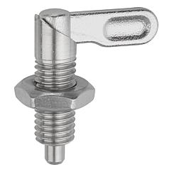 产品说明材料:不锈钢 1.4305。 规格:亮色 顶销 抛光,未经硬化处理。提示:手柄型分度销用在顶销不需要一直伸出的场合。手柄旋转180°顶销缩回。 套筒上有沟槽保证手柄可以维持在该位置。特点: 下载此处为收集信息的 PDF: