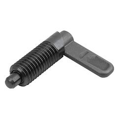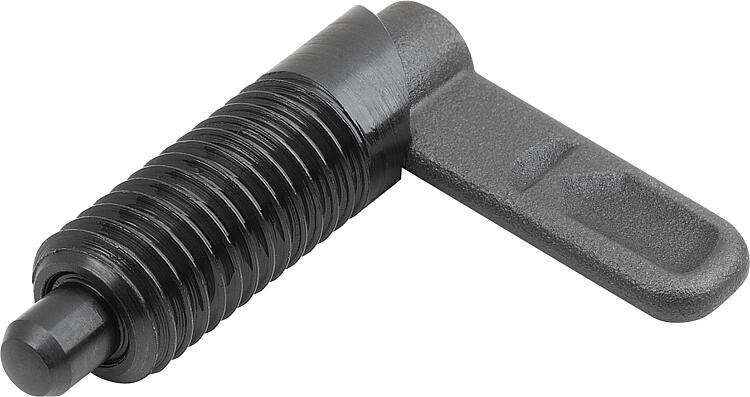 产品说明产品描述:用凸轮旋柄柱塞可防止锁紧位置由于受横向力的作用而发生移动。手柄旋转 180° 柱塞顶销缩回,因此可以改变锁紧位置。凹槽确保手柄保持在此位置,柱塞顶销保持缩回状态。材料:手柄 1.0503。 螺纹套筒和柱塞顶销为易切削钢。 压力弹簧 1.4310。规格:螺纹套筒和锁扣经黑色氧化处理。 柱塞顶销硬化,经打磨和黑色氧化。 压力弹簧亮色。优点:手柄旋转 180° 即可将柱塞顶销缩回。 通过外螺纹安装。根据要求:特殊类型。 附件:固定支架 03099。 定位衬套 03099-50, 03099-60, 03099-61。 特点: 下载此处为收集信息的 PDF: