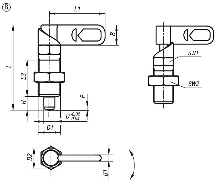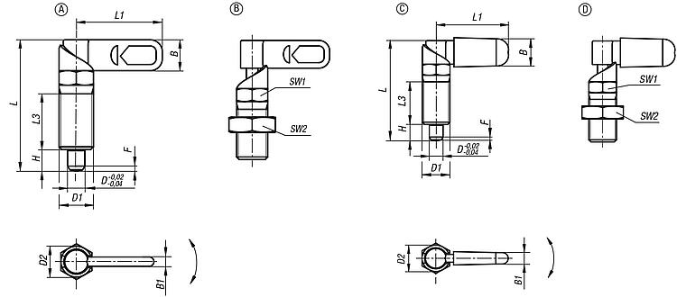 | D1 | D2 | L | L1 | L3 | B | B1 | H | Fx30° | SW1 | 初始位置 弹簧弹力 F1 约 N | 终点位置 弹簧弹力 F2 约 N | CAD | 配件 | 价格 | 订购 |