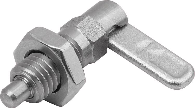 压力弹簧 1.4310. 规格:螺纹套管和手柄亮色。 柱塞顶销经打磨处理,亮色。 压力弹簧亮色。优点:手柄旋转 180° 即可将柱塞顶销缩回。 180° 停止,单侧旋转方向。根据要求:特殊类型。 附件:固定支架 03099。 定位衬套 03099-50, 03099-60, 03099-61。 特点: 下载此处为收集信息的 PDF: